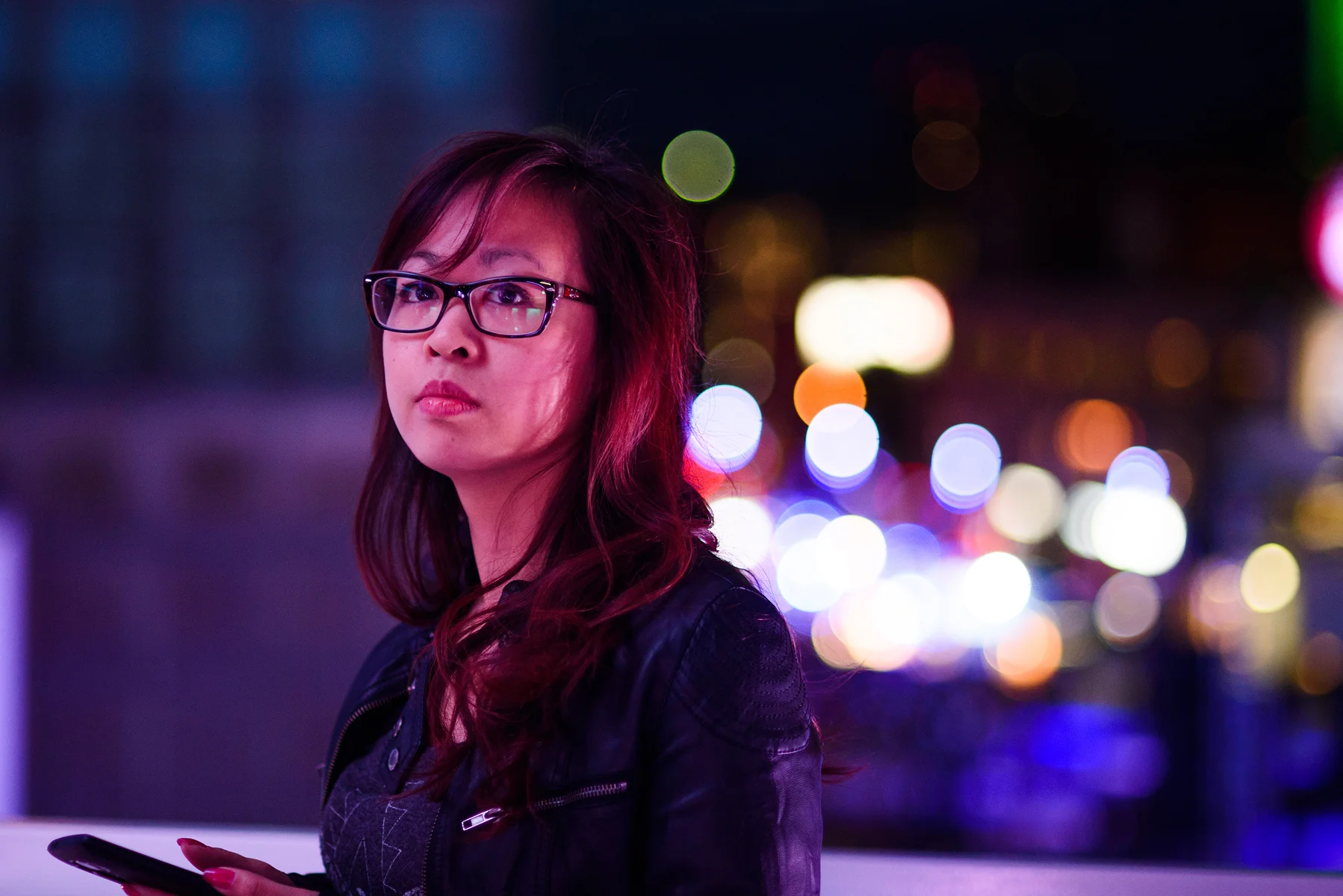 While the AF-D prime lenses display the high levels of depth rendition, saturation and micro-contrast of their Ai-S lens ancestors, they also carry their benefits in daylight and weaknesses in night time shooting situations. During the day, there is mostly a single dominant key light: the overcast sky or the sun. As daylight disappears, multiple lights add up on the subject. This creates a lot of bloom and heavy chromatic abberations. To correct for that, I need to drastically close the aperture down. Unless I can cast a dominant light on my subject, available light will render the AF-D lens useless in night time for high aperture handheld photography. Ex: If the 85 1.8D works very well at f1.8 (f2.2 fully corrected) during the day, it will require a close down to f2.8 (f4 fully corrected) to be satisfying for me during evening.